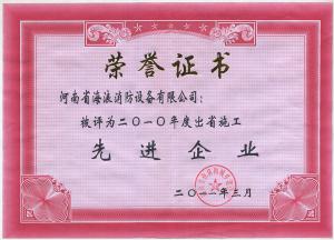 Certificate of honor